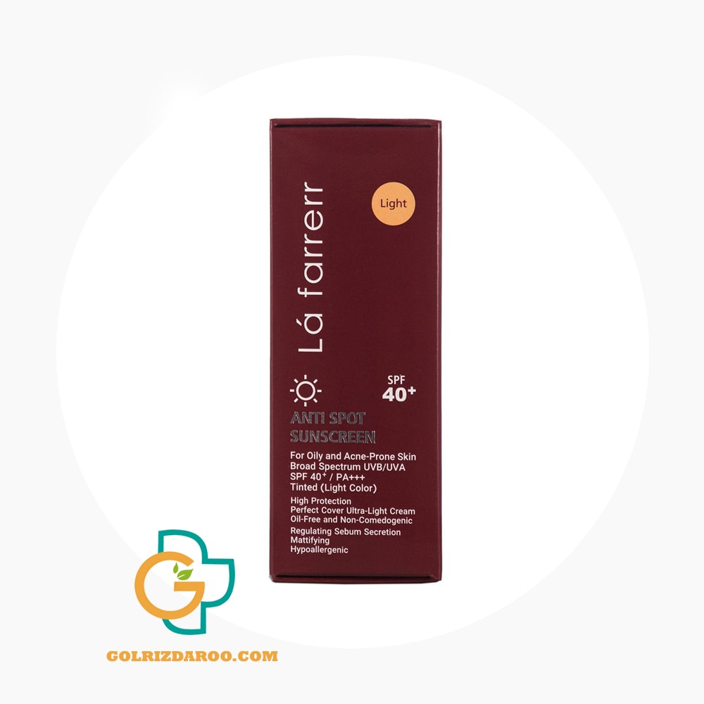 کرم ضد آفتاب و ضد لك لافارر فاقد چربی رنگی (رنگ روشن) اس پی اف 40 مناسب پوست های چرب و مستعد آکنه حجم 40 میلی لیتر